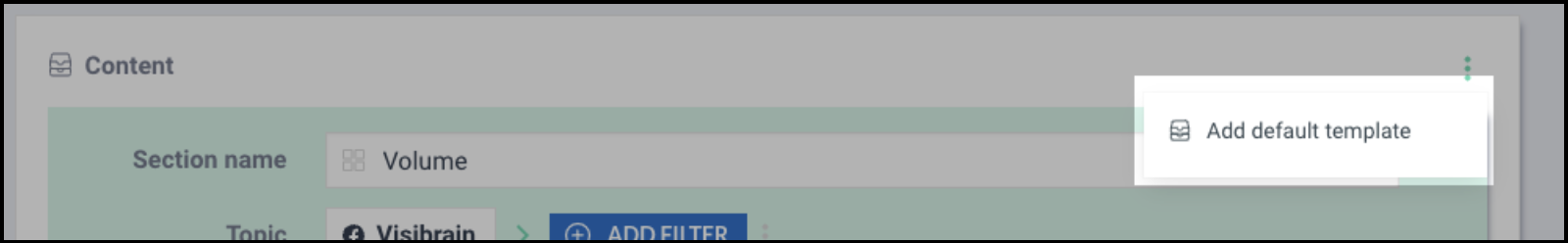 By clicking on "Action" in the top left hand corner, you can add the Visibrain Digest Template of your choice on any given Topic / Subtopic.&#x20;